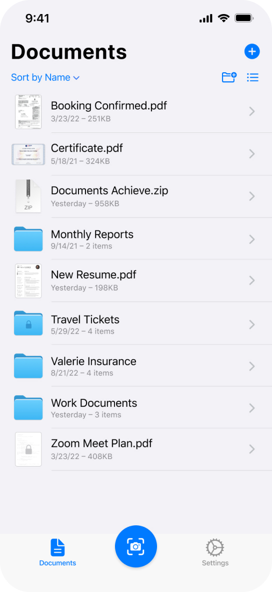 Organize the storage of documents in one safe convenient place. Collect documents into folders or archives. Set a password to protect important documents and folders.