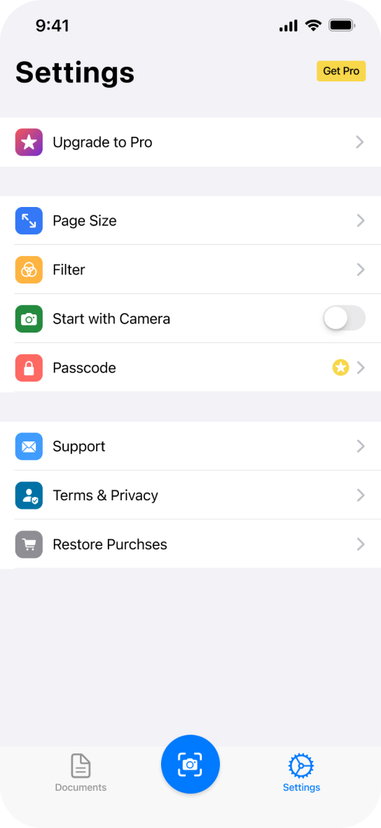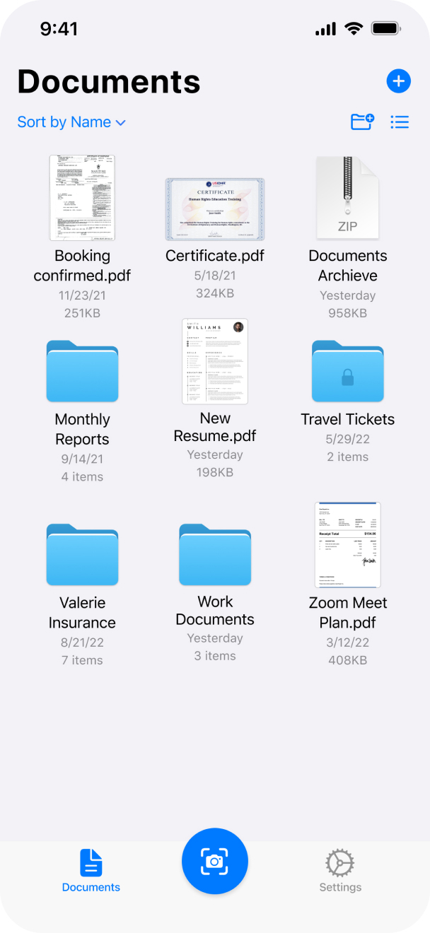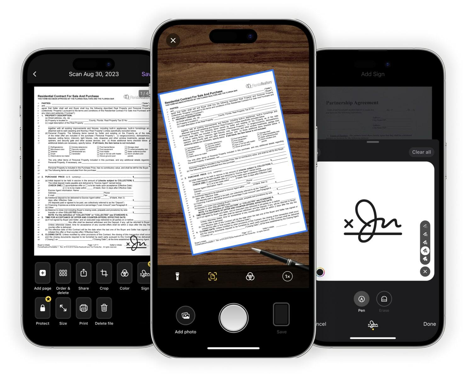 Save scanned docs to Photo or Files, or any file storage app, send by mail or messenger.